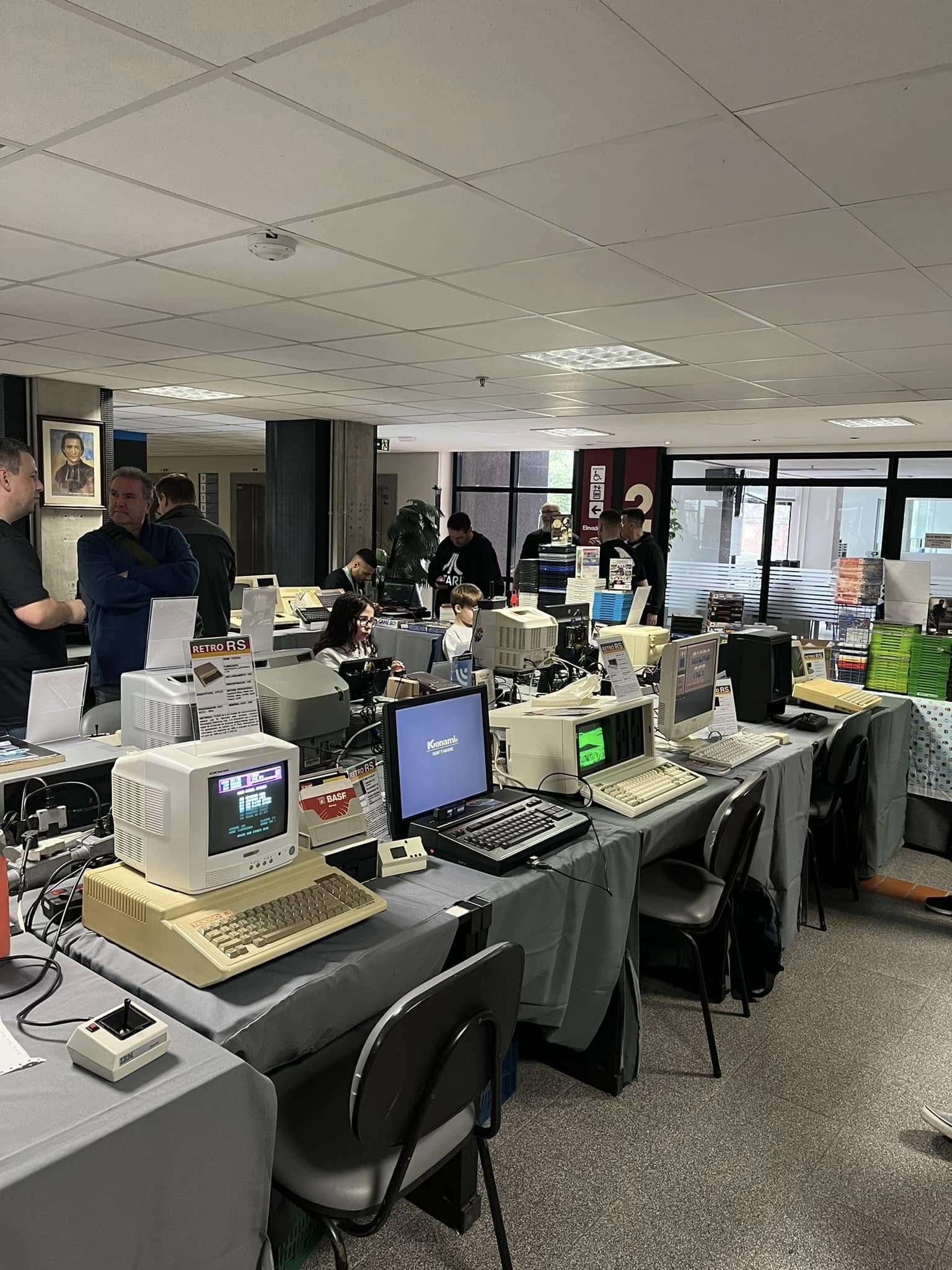 Exposição de computadores clássicos (MSX, Amiga, TK, Apple II, Atari, entre outros) funcionando e disponíveis para interação.